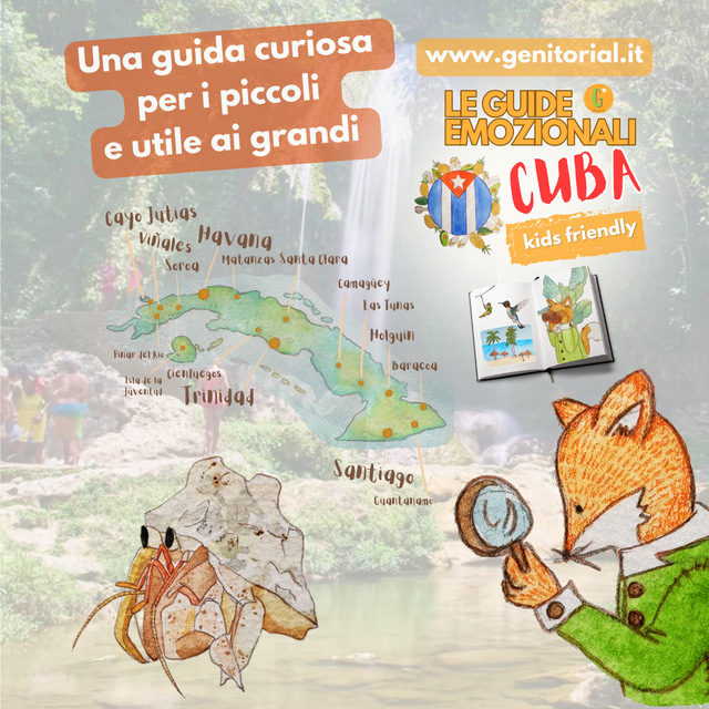 Una guida illustrata curiosa per i piccoli e utile ai grandi. Cento pagine di esperienze facili ed accessibili nell'occidente di Cuba. Per coinvolgere i bambini prima della partenza e renderli partecipi durante il viaggio. Informazioni generali per i genitori su un'isola verde, gentile e accogliente a misura di tutt*.